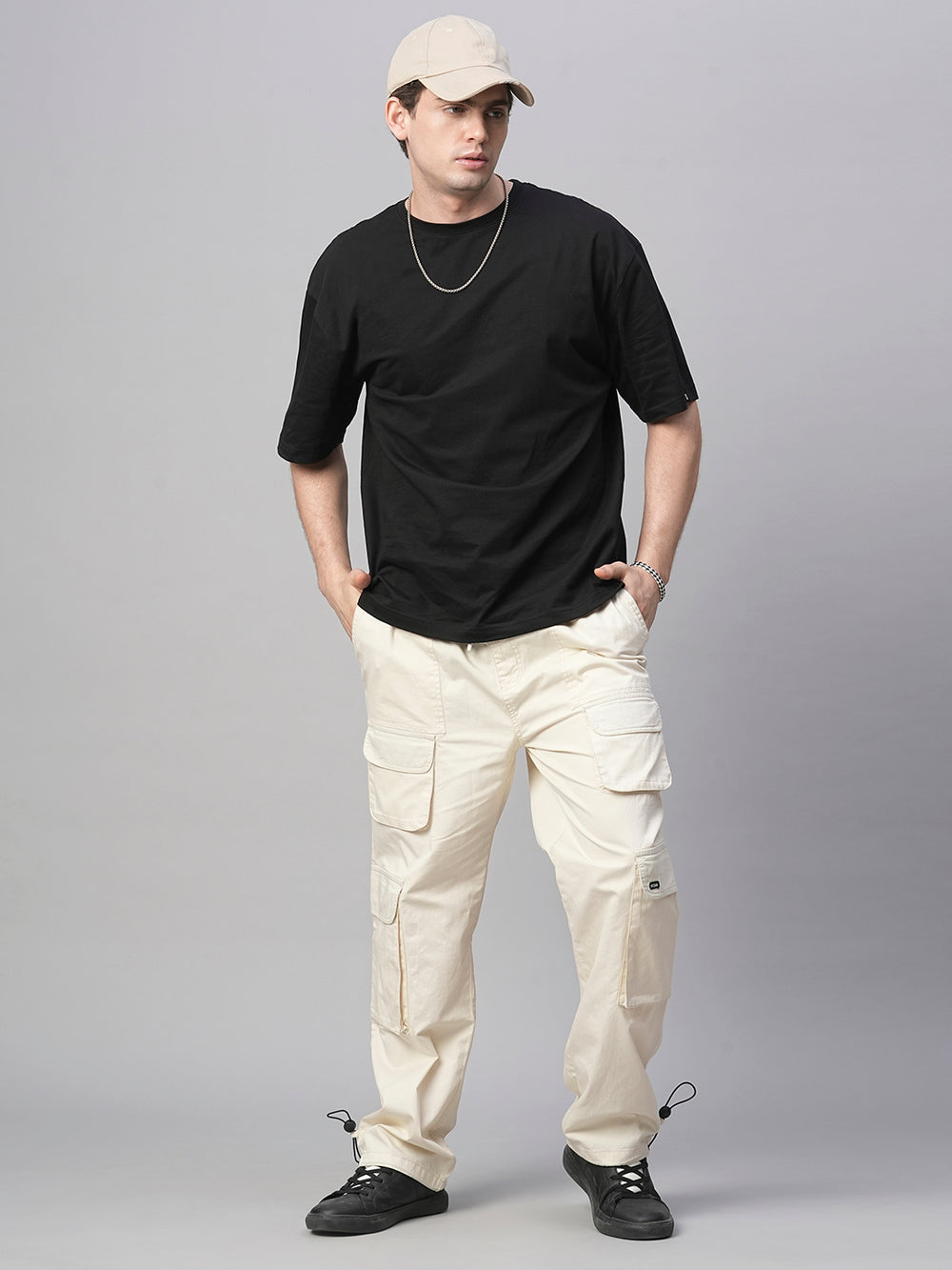 Solid Off White Men Drop Shoulder Premium Terry Sweatshirt