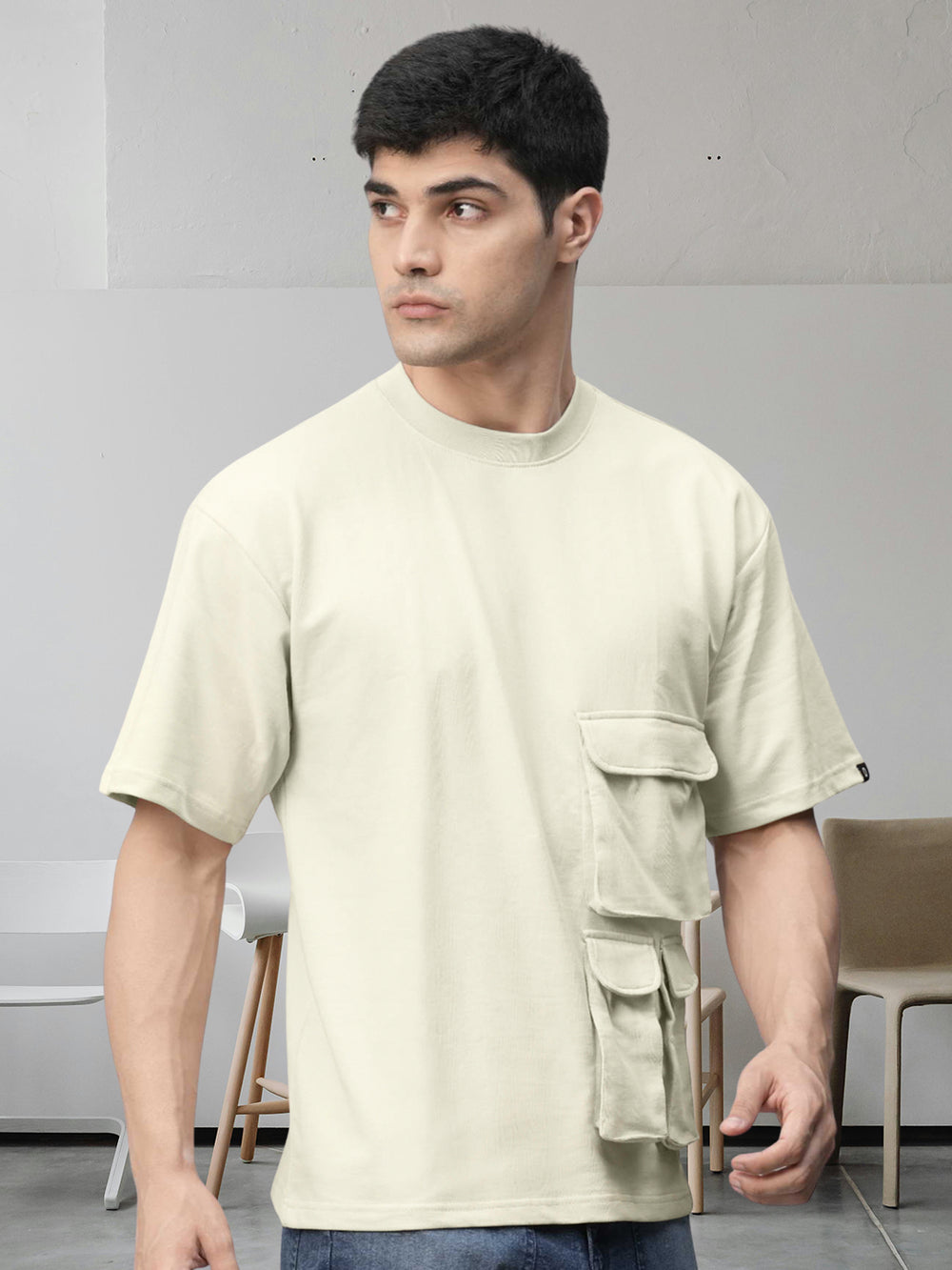 Buy premium quality off white color cargo t-shirt for men online from PRONK. Available in S,M,L,XL size. Explore the trendy collection of Cargo T-Shirts now!
