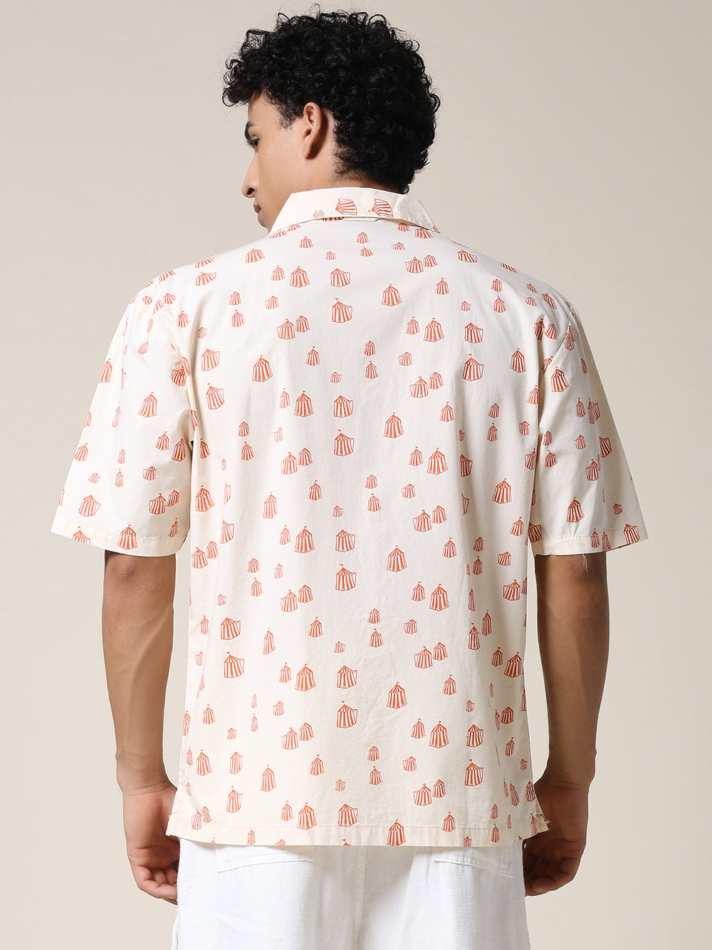 Stay cool and stylish with Beige half sleeve shirt for men featuring Orange Tent Print. Made from soft fabric. it is perfect for casual wear or summer outings.