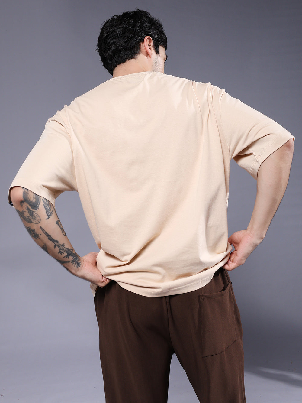 Buy premium Solid Men oversized t-shirt in Beige color at Pronk. Buy online at best price from Pronk. Shop now! Available in XS, S, M, L, XL, XXL.
