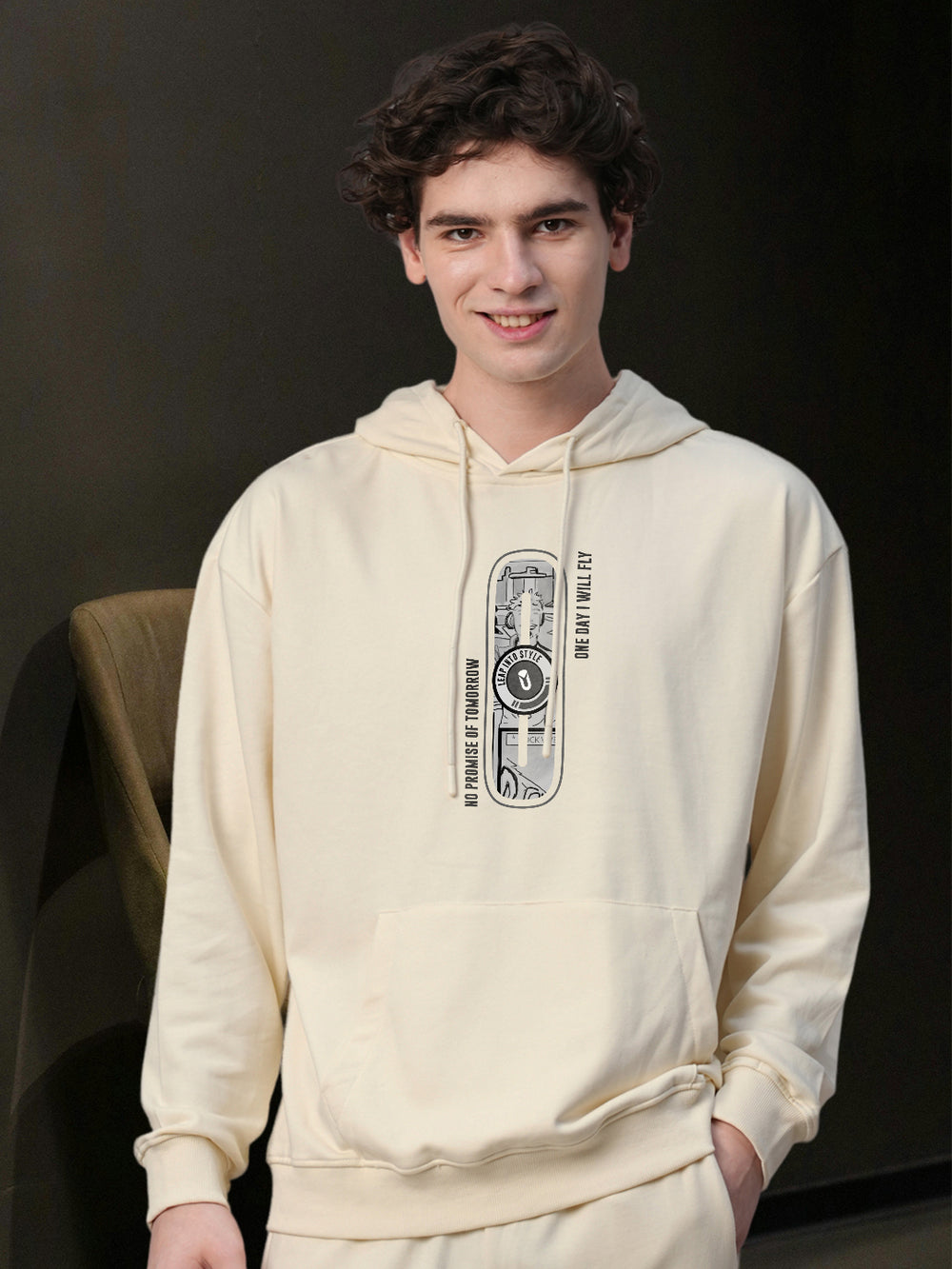 Buy off white color street vision men drop shoulder premium terry hoodie online from Pronk. Available in S, M, L, XL sizes.  Explore men's hoodies collection now. Free worldwide shipping!