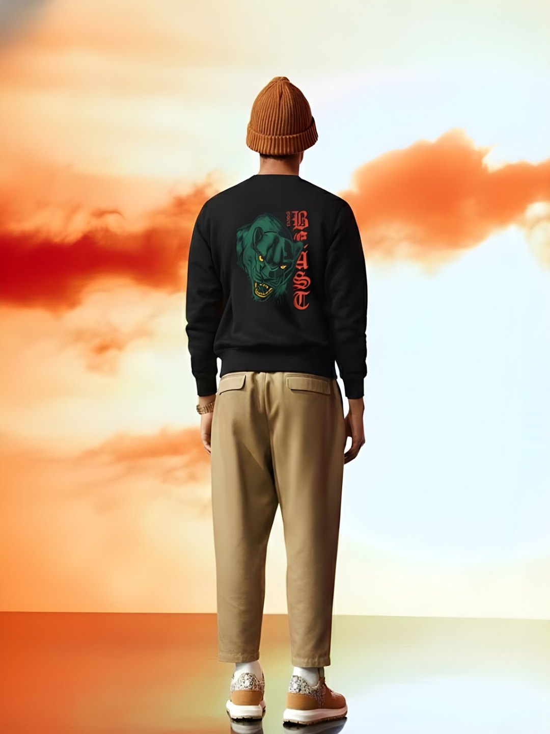 Extinct Beast Men Black Drop Shoulder Premium Terry Sweatshirt