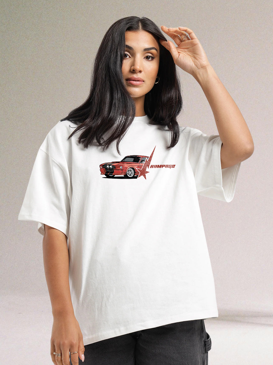 Make a bold statement with the Rampage Women Graphic Oversized Printed T-Shirt in white color available in XS,S,M,L,XL,XXL size. Buy online now from PRONK!