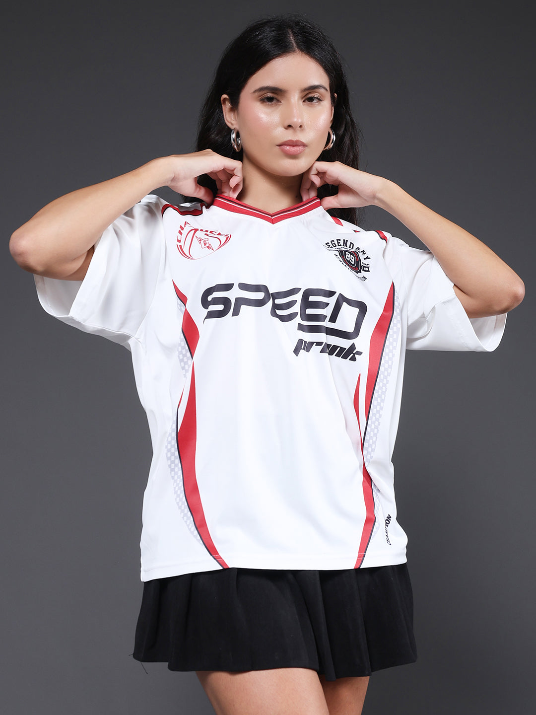 Buy premium  Women printed oversized varsity t-shirt in white color at Pronk. Available in S, M, L, XL size. Choose from the latest trendy designs of women's oversized t shirts. Shop online now!