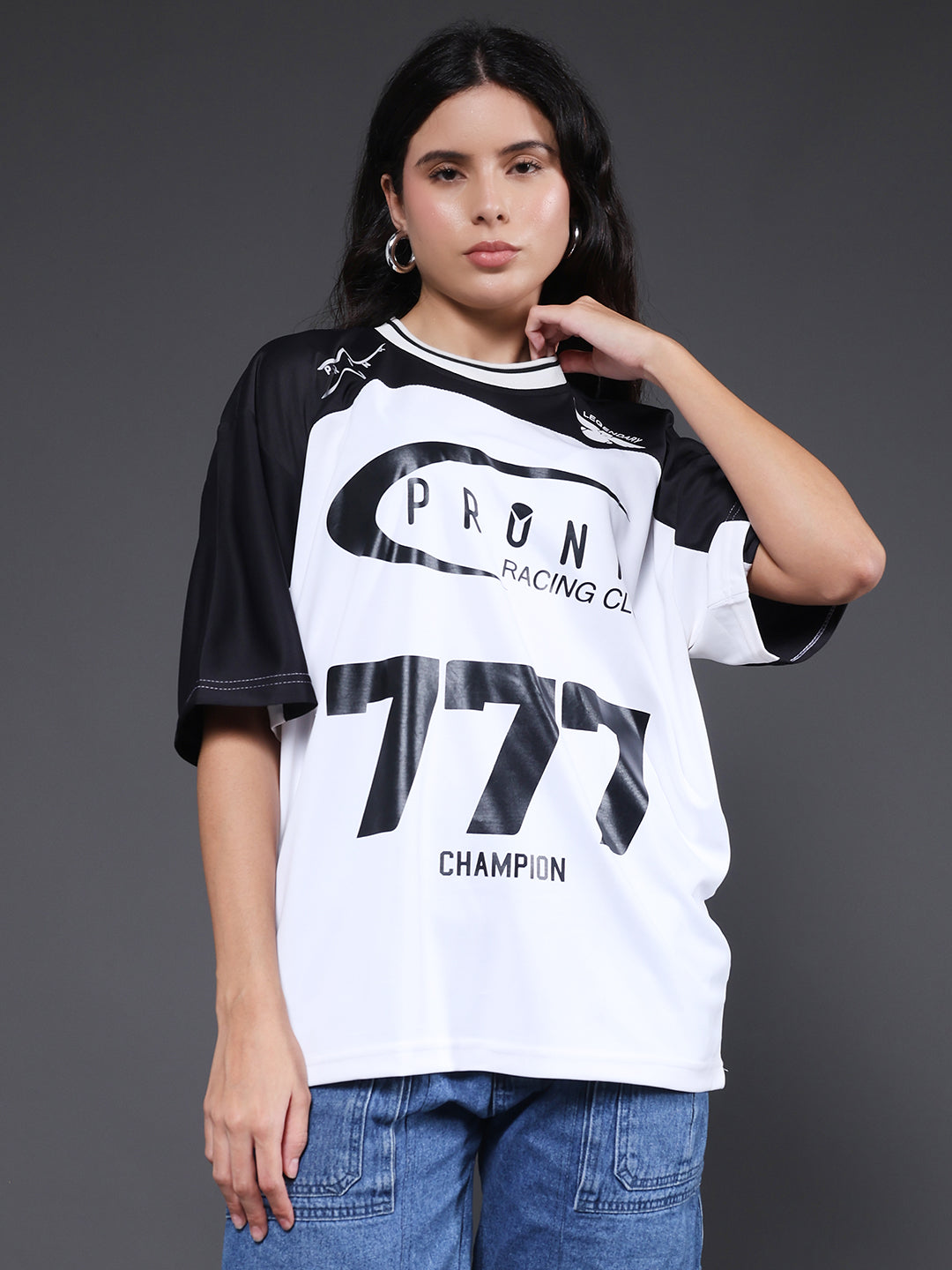 Get Printed women's oversized Varsity T-shirts online from Pronk. Available in S, M, L, XL size. Explore wide range of designs of women's topwear. This T-shirt delivers exceptional comfort making it ideal for casual wear. Shop now!